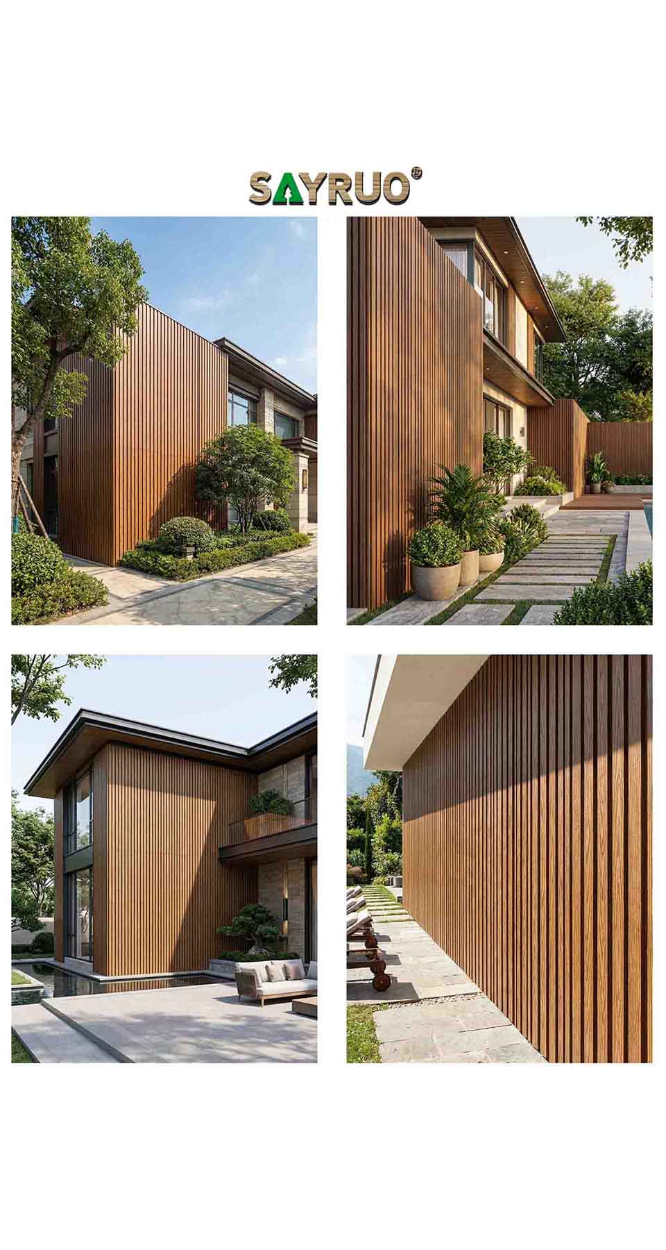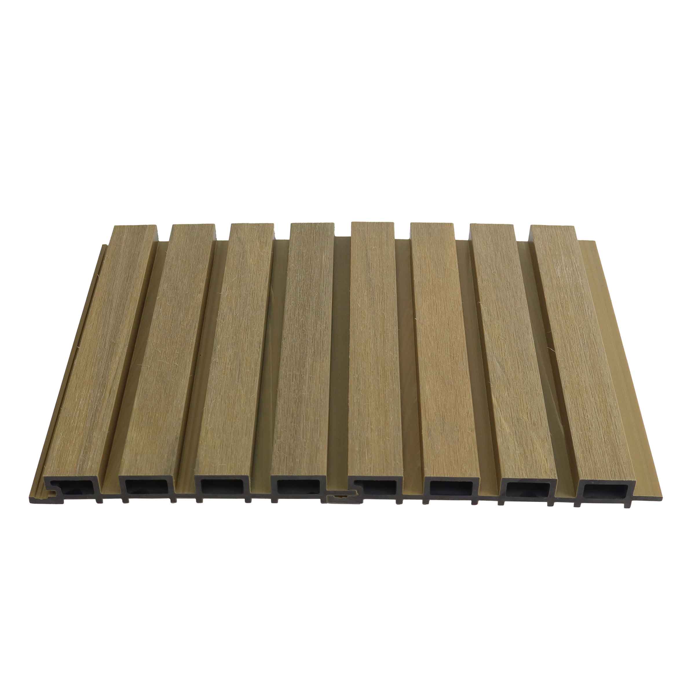 超厚型 219x26 毫米共挤木塑复合材料幕墙板。专为需要卓越抗冲击性和结构刚性的公共空间 B2B 项目而设计。