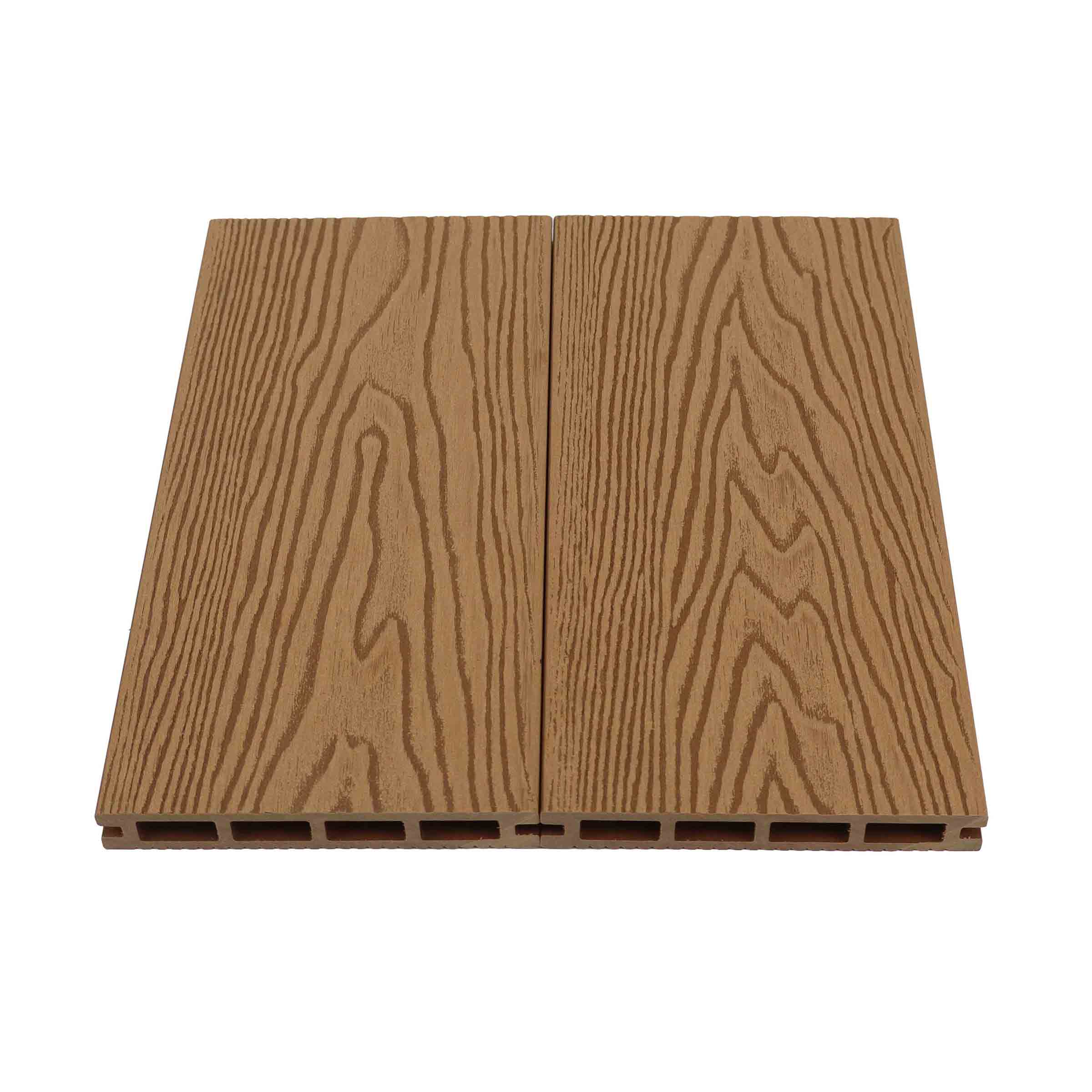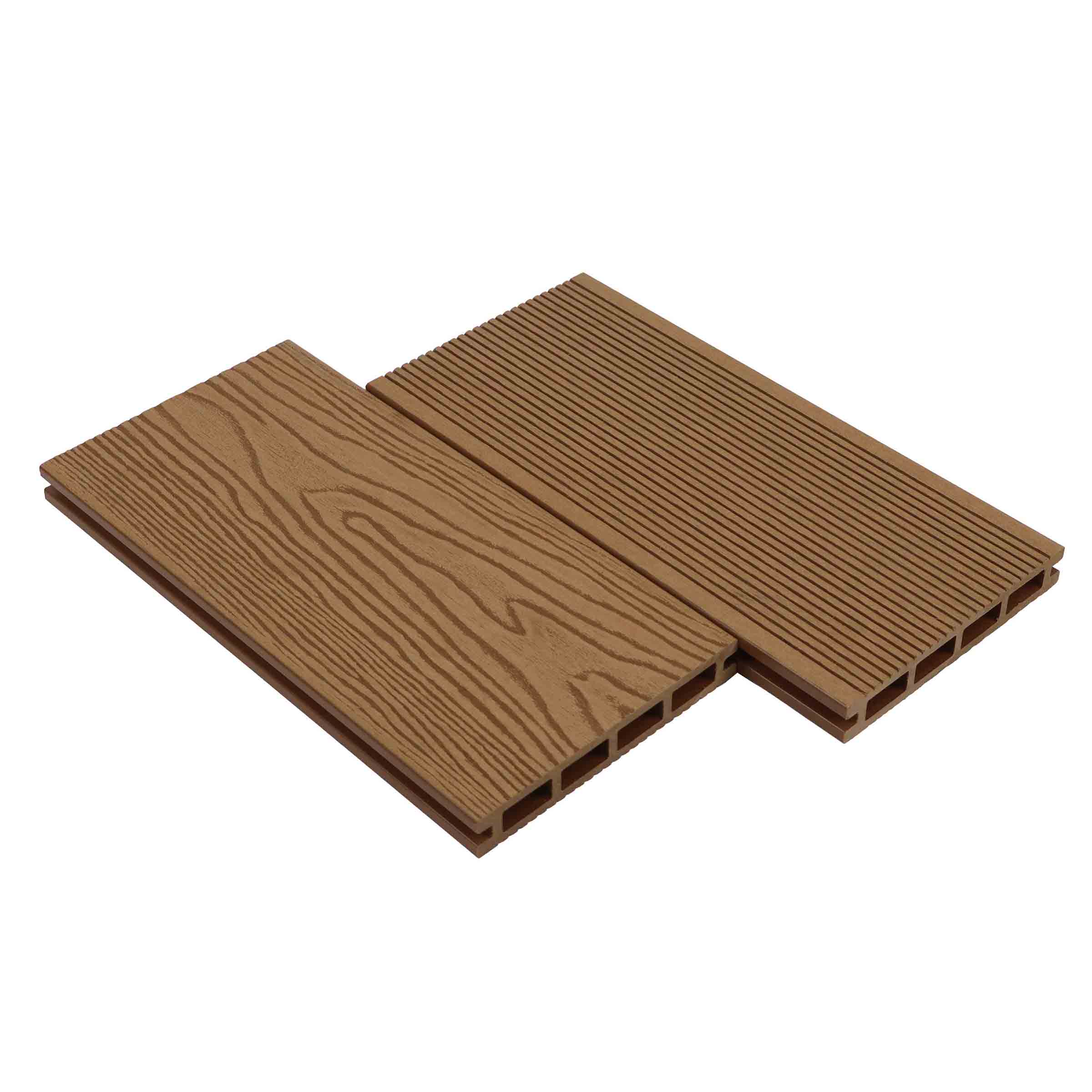 采用再生木纤维和高密度聚乙烯制成。符合LEED认证标准。深压纹自然纹理。